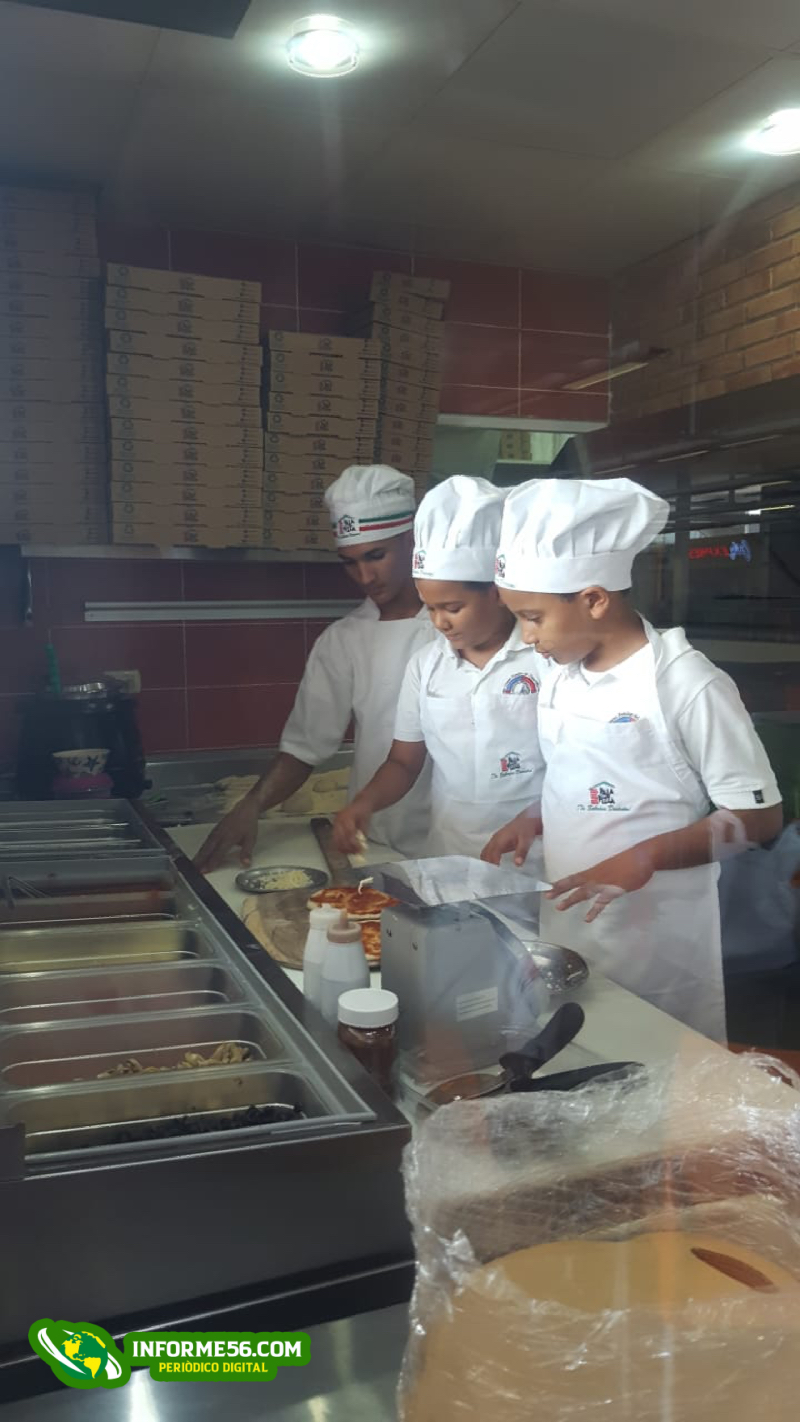 Informe56 / San Francisco de Macorís.- Los compañeritos del Centro del Desarrollo Infantil (CEFADI), conocieron los secretos de la fabricación de pizzas en la actividad «Pizzeritos por un día» de Pala Pizza, en Palmares Mall, en la que los niños mediante la práctica aprenden a elaborar su propia pizza.