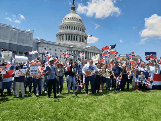 “Venimos aquí en este día, primero, a agradecer a los congresistas estadounidenses que se han identificado con esta causa y que han manifestado publicamente rechazo a que nuestra Carta Magna sea pisoteada y la voluntad de la gran mayoría de dominicanos sea ignorada e irrespetada”, dijo uno de los canvocantes.