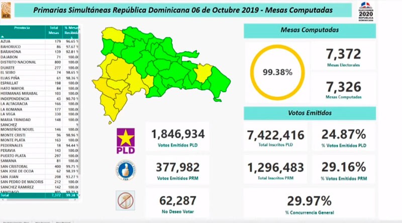 Comenzando con el tres veces de la Presidencia de la República Dominicana Leonel Fernández que comenzó arriba en una mayor parte del conteo de votos, pero a medida que iba avanzado la lectura de los resultados emitido por el Sistema de Voto Automatizado, el candidato del danilismo Gonzalo Castillo fue subiendo, al punto de que en los últimos reportes, con el 99.92% de las mesas computadas, el precandidato presidencial Gonzalo Castillo mantiene ventaja 48.69% sobre Leonel Fernández 47.33% en las primarias abiertas por el Partido de la Liberación Dominicana (PLD).