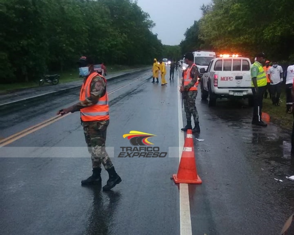 Tres personas fallecieron la tarde de este viernes en un accidente ocurrido en el kilómetro 23 de la Autopista Juan Pablo II (Autopista de Samaná), en las proximidades de Pueblo Viejo, Monte Plata.