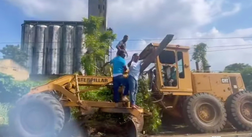 Poste de luz cae sobre grédar que acondiciona carretera Villa Riva