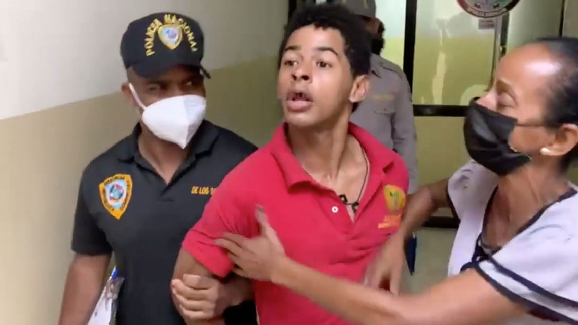 La madre del detenido salió en su defensa en el interior del cuartel de la policía.