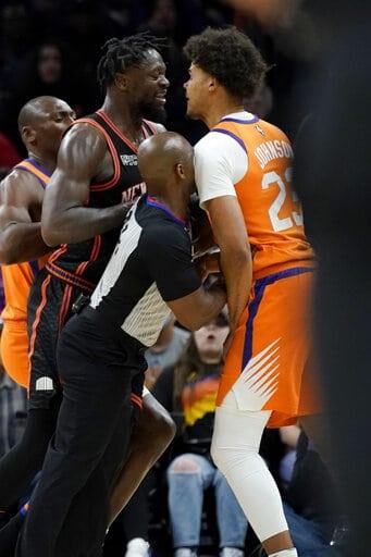 Tanto Randle como Johnson recibieron faltas técnicas después de los empujones e intercambiar palabras en el incidente que ocurrió en el tercer cuarto de la victoria de Phoenix por 115-114 sobre los Knicks el viernes por la noche. Un árbitro los separó, pero fue cuando Randle lo embistió para empujar nuevamente a Johnson, lo que le valió su expulsión.