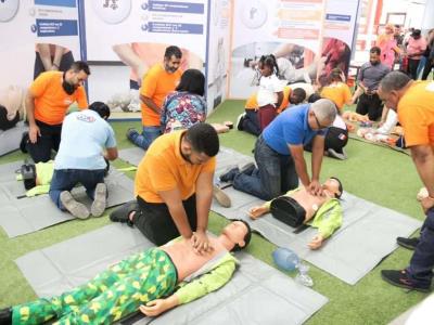 Con ejercicios prácticos y breves, cientos de personas que visitaban la Plaza Sambil aprendieron maniobras para reanimación cardiopulmonar (RCP), atención de una persona atragantada o herida y extinción de un conato de incendio.