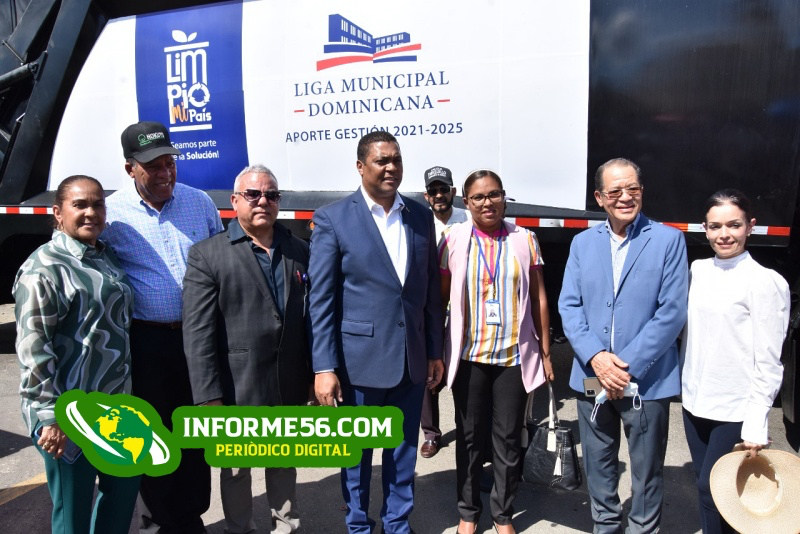 San Francisco de Macorís.- El presidente de la Liga Municipal Dominicana (LMD) Víctor D´Aza entregó un moderno camión compactador y 20 contenedores al Ayuntamiento de San Francisco de Macorís.