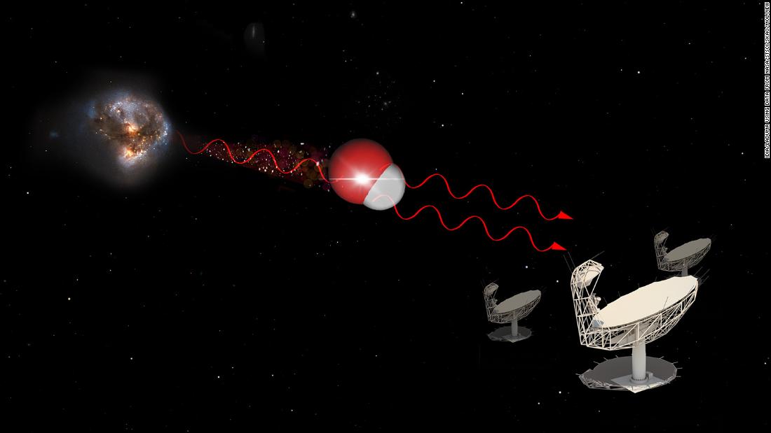 Un equipo internacional de astrónomos que dirigió el investigador Marcin Glowacki observó esta luz con el telescopio MeerKAT del Observatorio Radioastronómico de Sudáfrica. (MeerKAT es la abreviatura de Karoo Array Telescope, precedida por la palabra en afrikáans que significa «más»).