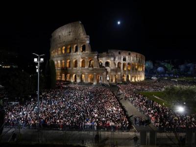 El Coliseo, símbolo de la persecución de los primeros cristianos, volvió a acoger a miles de fieles -unos 10,000- que acudieron para participar en un rito que se remonta al siglo XVIII, en tiempos de Benedicto XIV, aunque fue retomado en 1959 por Juan XIII.