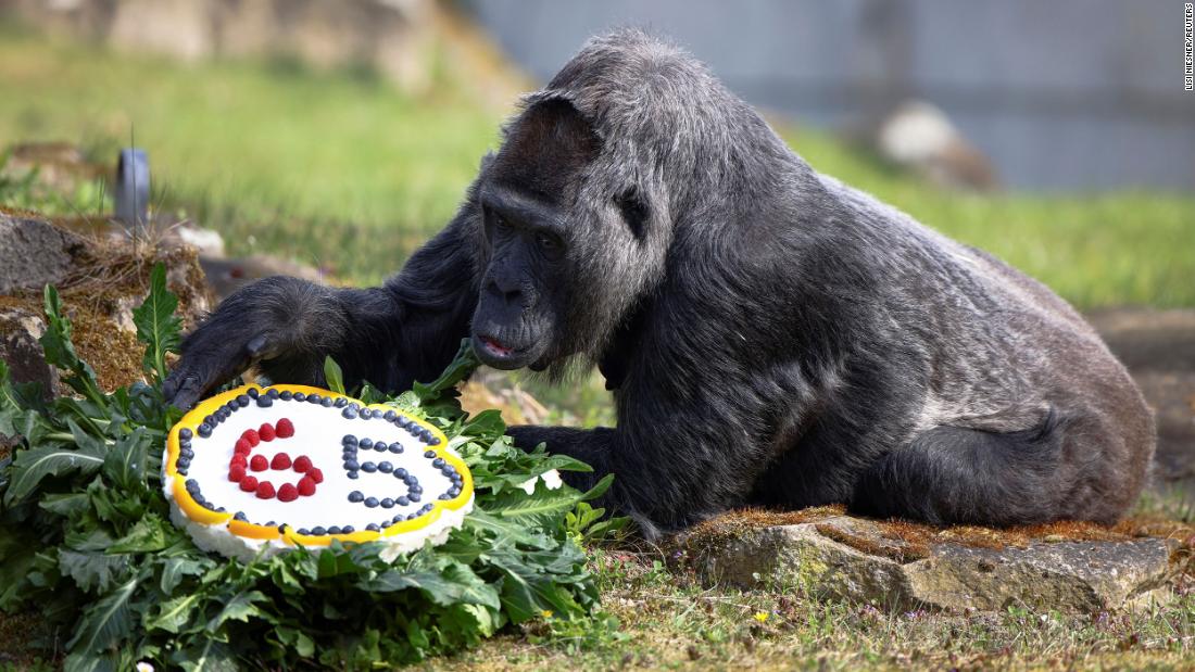(CNN) — Fatou, una gorila occidental de tierras bajas que se cree que es la más anciana del mundo, acaba de celebrar su 65 cumpleaños en el Zoológico de Berlín.