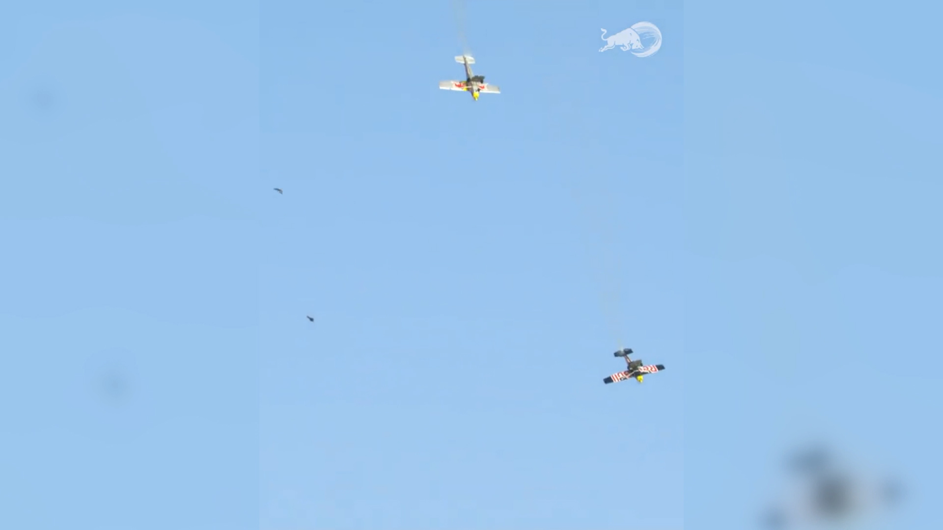 El evento involucró a dos pilotos y especialistas en paracaidismo, Aikins y Andy Farrington, cuyas biografías registran miles de horas de vuelo. Los organizadores dijeron que los pilotos planeaban recuperar los aviones antes de que alcanzaran 1,2 kilómetros de altura.