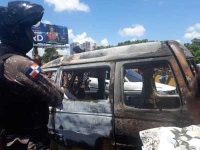 Por el momento solo se ha identificado al conductor del minibús, marca Hayet, incendiado, el señor Carlos Manuel Mazara, trasladado junto al otro adulto herido al Hospital Ney Arias Lora.