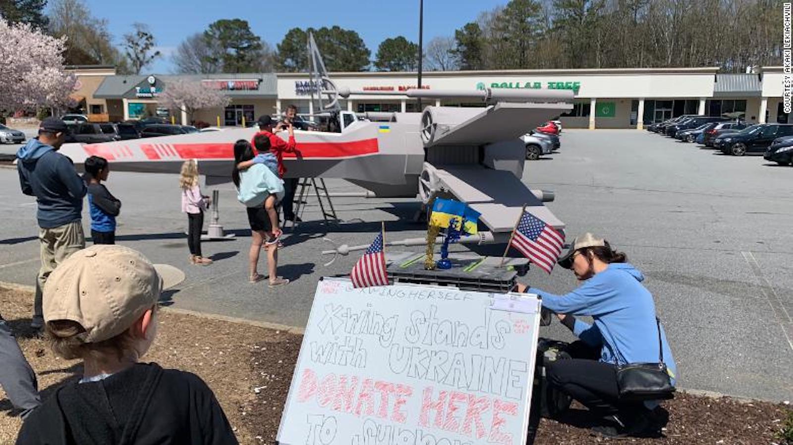 «Desplegamos el X-Wing y la gente se alinea. Los niños quieren sentarse y presionar botones, tomar fotografías y donar. Hemos estado recaudando mucho dinero», dice Lekiachvili.