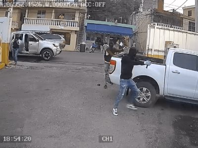 El comando, compuesto por seis hombres llegó al lugar a bordo de una camioneta y cinco de ellos se desmontaron con sus armas en manos mientras el conductor los esperaba en el vehículo, según se ve en un video de una cámara de vigilancia que capto el suceso.