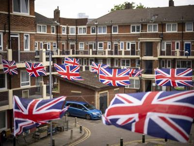 Las calles y las tiendas ya están decoradas con banderas del país, mientras que algunos comercios tienen fotografías de Isabel II y todo tipo de parafernalia sobre el jubileo.