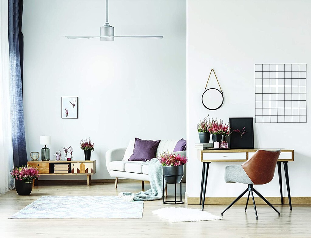 Con estilo nórdico, puedes elegir el color del motor y de sus tres aspas de 132 cm de diámetro. Su motor de corriente continua es de 40W y destaca por las opciones de ajuste, ya que tiene seis velocidades diferentes y función inversión. Si eliges la versión con luz LED, podrás alternar entre tres temperaturas.