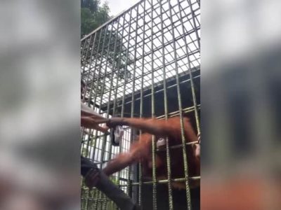 Orangután atrapa a un hombre y se rehúsa a soltarlo