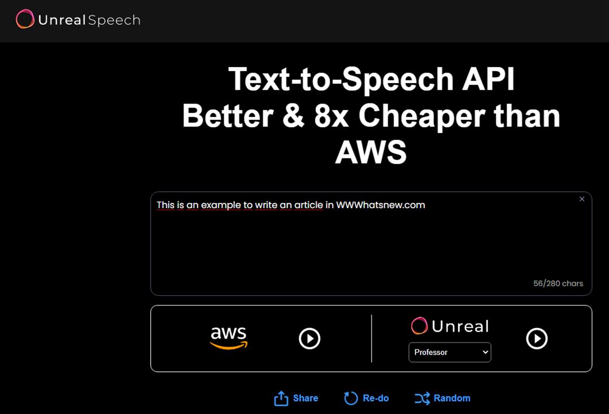 Se trata de unrealspeech.com, una API que se puede contratar por un precio ocho veces menor que la de AWS, ideal para una enorme cantidad de tareas, desde crear audiolibros a facilitar el acceso a la información a las personas con algún tipo de deficiencia visual.