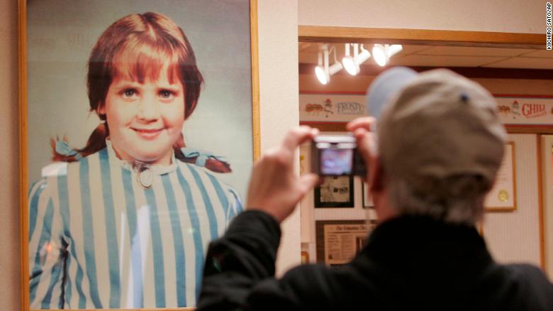 Thomas le dijo a su hija un día en casa que se recogiera el cabello en coletas y tomó fotografías con su cámara. Lucía un vestido de rayas azules y blancas cosido por su madre para las fotos que eventualmente la convertirían en un personaje de la comida rápida reconocido en todo el mundo.