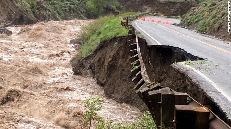 Mientras tanto, varios caminos y puentes en Yellowstone también se han visto comprometidos por las inundaciones, dicen los funcionarios del parque. Los videos publicados por el parque muestran partes de los caminos pavimentados arrastrados o gravemente erosionados.