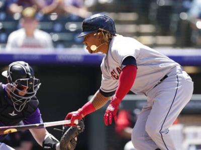 El dominicano Ramírez pegó un rodado al jardín contrario y la pelota se mantuvo pegada a la raya de la antesala, frente a un desplazamiento defensivo que pareció exagerado por parte de los Rockies en el primer inning.