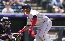 El dominicano Ramírez pegó un rodado al jardín contrario y la pelota se mantuvo pegada a la raya de la antesala, frente a un desplazamiento defensivo que pareció exagerado por parte de los Rockies en el primer inning.
