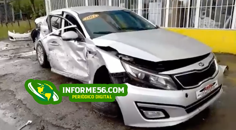 Según muestran las imágenes obtenidas por la redacción de este diario, un carro Kia, color gris, que se desplazaba a muy alta velocidad, se deslizó y terminó impactando otro que estaba estacionado, el cual a su vez colisionó con una camioneta, produciéndose un triple choque.