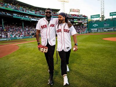Manny Ramírez y David Ortiz fueron invitados para participar en la ceremonia previa al partido celebrado este lunes por la noche en el Fenway Park entre los Medias Rojas de Boston y los Tigres de Detroit.