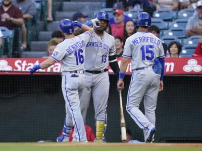 ANAHEIM, California, EE.UU. (AP) — Andrew Benintendi, Salvador Pérez y Hunter Dozier la sacaron del parque, Nicky Lopez remolcó la carrera de la ventaja en el séptimo inning y los Reales de Kansas City derrotaron el lunes por 6-2 a los Angelinos de Los Ángeles, en el primer juego de una serie de tres.