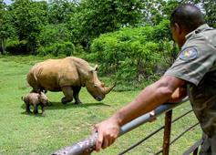 Parado frente a una amplia meseta verde poblada de diferentes especies animales, el especialista explica que se está «formando un banco genético que puede en un futuro» permitirles «introducir algunos de estos individuos en parques nacionales de África», donde la especie está muy afectada por la caza furtiva que alimenta el lucrativo negocio de los cuernos de estos mamíferos para mercados de Asia.