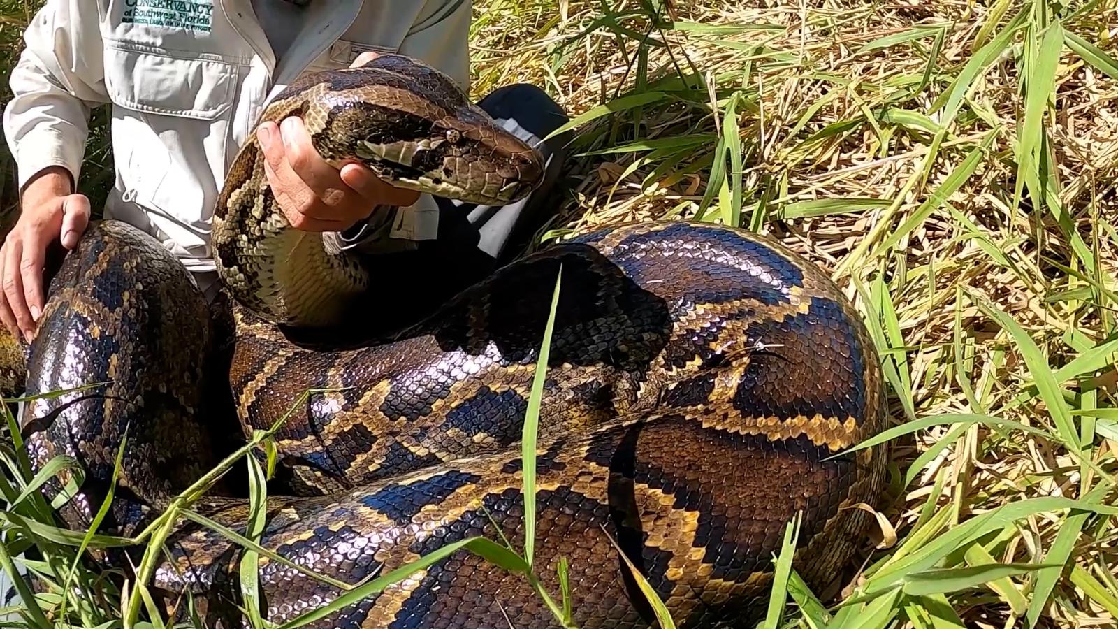 La organización capturó el enorme reptil como parte de su programa de investigación sobre la pitón birmana invasora.