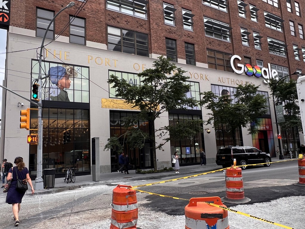 Si la localización de esa Apple Store, la más icónica del mundo, es la de un punto pegado a Central Park, en una ubicación estrella; la de la Google Store, en dirección opuesta desde Manhattan, no puede tildarse de “estrella” a día de hoy… pero quizás sí en un futuro. Porque esta tienda se encuentra en Chelsea, un barrio en proceso de gentrificación, como lo fueron el Born en Barcelona o Lavapiés en Madrid, en este caso de rascacielos de caravista en lugar de cristal y acero, como en el sur de Manhattan. A cuatro minutos a pie está High Line Park, epicentro e icono de esta transformación: de línea de ferrocarril abandonada a pasarela verde llena de vegetación y habitual espacio para el arte.