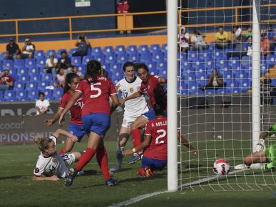 En la primera semifinal, Estados Unidos se impuso 3-0 a Costa Rica con goles de Emily Sonnett, al minuto 34, Mallory Pugh, al 45+3, y Ashley Sanchez, al 90+5.