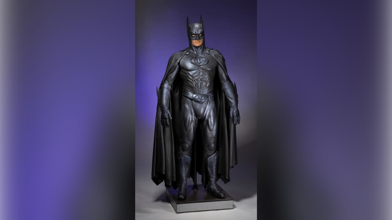La subasta comienza el 22 de julio y la puja actual era de US$ 40.000 hasta el sábado. Fabricado con látex, vinilo, resina, cuero y otros elementos, el traje viene montado en un maniquí de tamaño natural con una «cabeza hiperrealista de George Clooney», según Heritage Auctions. El traje incluye la capucha característica de Batman, una capa completa, una túnica musculosa, mallas musculosas, guantes y botas hasta la rodilla.