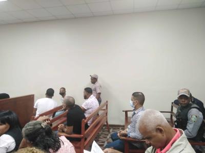 Los jueces de la Tercera Sala Penal de la Corte de Apelación del Distrito Nacional conocen la solicitud de variación de las medidas de coerción impuestas a los siete imputados de golpear en el destacamento de Naco a David de los Santos, lo que le produjo su muerte el pasado mes de abril.