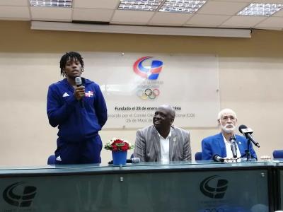 El acto de recibimiento se realizó en el salón Juan Ulises García Saleta, del COD y sus palabras fueron escuchadas directamente por el presidente del organismo, Antonio Acosta Corletto, quien estuvo presente en el acto, así como el tesorero de la institución, José Luis Ramírez y el presidente de la Federación Dominicana de Asociaciones de Atletismo.
