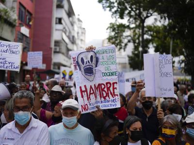 Maestros del sector público en Venezuela marchan