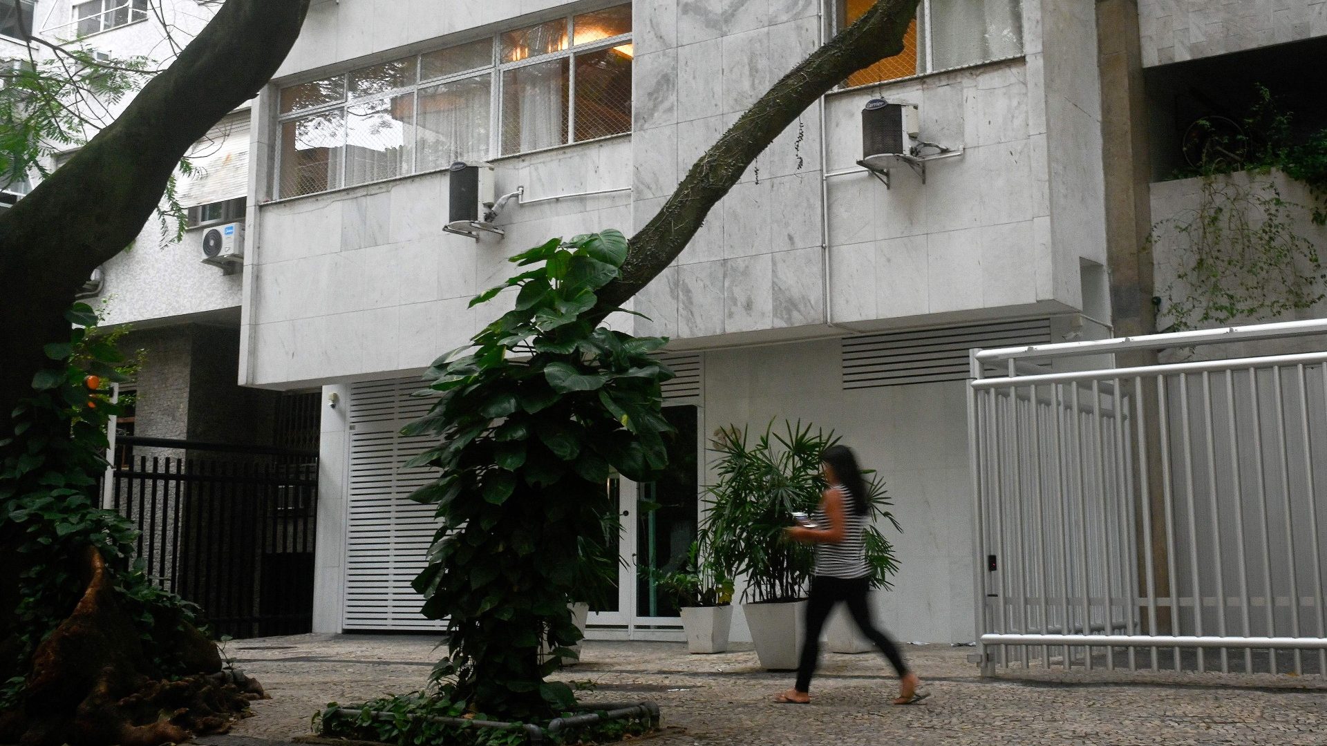 Imagen tomada el 6 de agosto de 2022 de la entrada del edificio donde murió el 5 de agosto el belga Walter Henri Maximilien Biot, marido del cónsul alemán Uwe Herbert Hahn, en el apartamento que compartían en Río de Janeiro, Brasil. (Crédito: ANDRE BORGES/AFP vía Getty Images)