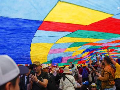 La Guardia Indígena acompañó a Petro y a su esposa hasta que subió a la tarima en donde estaban los invitados internacionales y gente del común.
