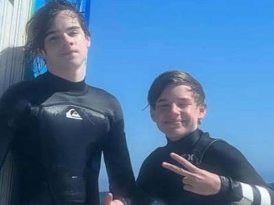 Los jovencitos continúan disfrutando su día especial tomando clases de surfing en la playa. Así lo reveló su orgulloso padre, quien publicó las instantáneas de sus hijos en Malibú, California, Estados Unidos, en las redes sociales y siendo guiados por el entrenador Aleks Pevec.