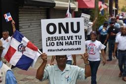 Con el azul, rojo y blanco en la Bandera Nacional, sus vestimentas y hasta pintados en el rostro, los que se dieron cita al evento denominado “Marcha Patriótica”, organizado por el Instituto Duartiano, exigieron la participación internacional, agilidad en la construcción del muro fronterizo, cumplimiento del código laboral dominicano y normas migratorias, así como otras solicitudes plasmadas en un manifiesto.