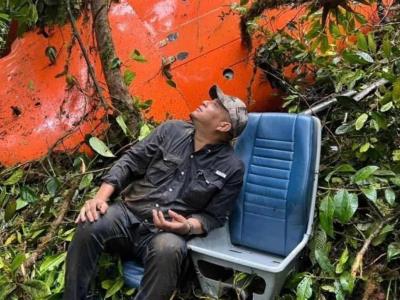 «El helicóptero se estrelló (…) hay que darle gracias a Dios que estamos vivos», dice entre gemidos de dolor Dimitri Flores, uno de los ocupantes del aparato color naranja, que aparece al fondo del video entre ramas de árboles.