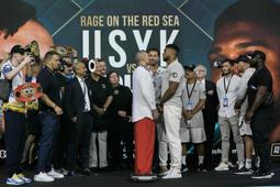 Los dos peleadores intercambiaron miradas después del pesaje en el complejo King Abdullah Sports City, ignorando las repetidas solicitudes de que se separaran.