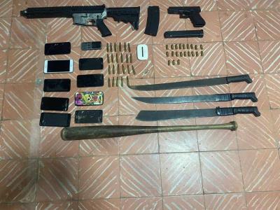 En el lugar fueron colectados diez teléfonos celulares de diferentes marcas y colores, un Mobile Wifi, marca Huawei, color blanco, un bate de béisbol de color marrón, y otros dos machetes de aproximadamente 20 pulgadas de largo.