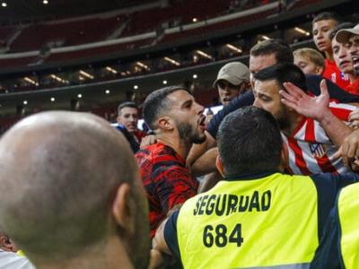 Hermoso se enfadó y empezó a intercambiar palabras con los hinchas situados en el sector donde se ubican los ultras del Atlético.