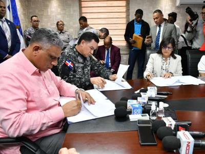 El acuerdo fue rubricado por el ministro de Interior, Jesús Vásquez Martínez, y el director de la Policía Nacional, mayor general Eduardo Alberto Then, de parte de las autoridades, y por las empresas Pedro Lama, de Plaza Lama; María del Carmen Ramos, del Grupo Ramos, y José Manuel Rodríguez, de Supermercados Olé, e Iván García, presidente de la FDC, respectivamente.
