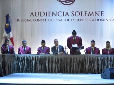 El Tribunal Constitucional realiza la Audiencia Solemne, en la que, además de los jueces de ese tribunal, asiste la procuradora General, Miriam Germán, senadores y demás autoridades de la provincia de San Cristóbal.