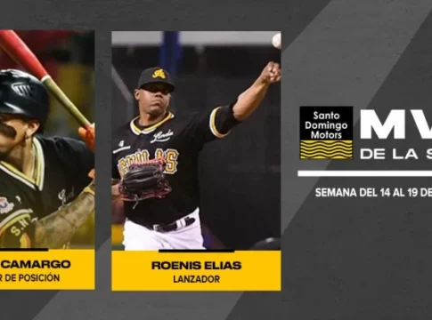 Johan Camargo, como jugador de posición, y Roenis Elías, como lanzador, fueron seleccionados este domingo los MVP de la Semana Santo Domingo Motors del período comprendido entre el 14 y 19 de este noviembre.