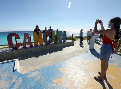 Turistas disfrutan sus vacaciones, el 26 de diciembre de 2021, en el balneario de Cancún, estado de Quintana Roo (México). EFE/Alonso Cupul