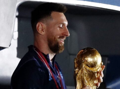 Las sorpresas comenzaron en el aeropuerto, con la alfombra roja junto al avión y La Mosca cantando en vivo el “Muchachos” que se convirtió en himno en Qatar. El capitán, portando el galardón, fue el primero en asomarse de la aeronave junto al técnico Lionel Scaloni. Al ver tamaño montaje, sonrió y atinó a decir “qué hago”. Decidió ser natural y alzó el trofeo con una sonrisa enorme para ganarse la primera gran ovación.