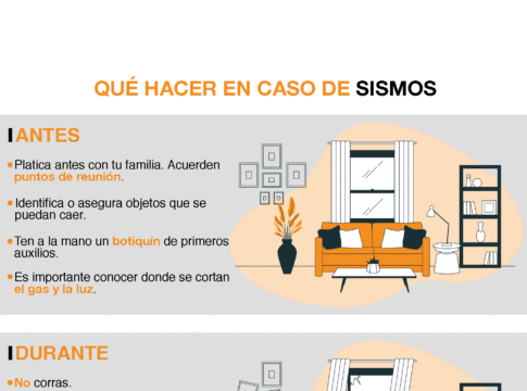 También puedes seguir las siguientes medidas antes de un terremoto: prepara un plan de protección civil, participa en simulacros de evacuación, encuentra las zonas de seguridad en casa, escuela o lugar de trabajo y alista una mochila de emergencia.