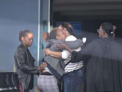 Apenas sosteniéndose en sus pies, y con el apoyo de sus seres queridos, llegó este viernes Alexandra García al lugar donde son velados sus dos hijos, quienes fueron asesinados a manos de su padre, de quien la mujer ya se había separado.